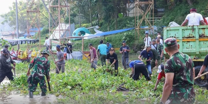 Aksi bersih-bersih tersebut melibatkan unsur Satuan Tugas Citarum Harum, TNI, relawan, serta masyarakat setempat. Mereka bersama-sama membersihkan sampah yang menumpuk di area pelabuhan dan sekitarnya.
