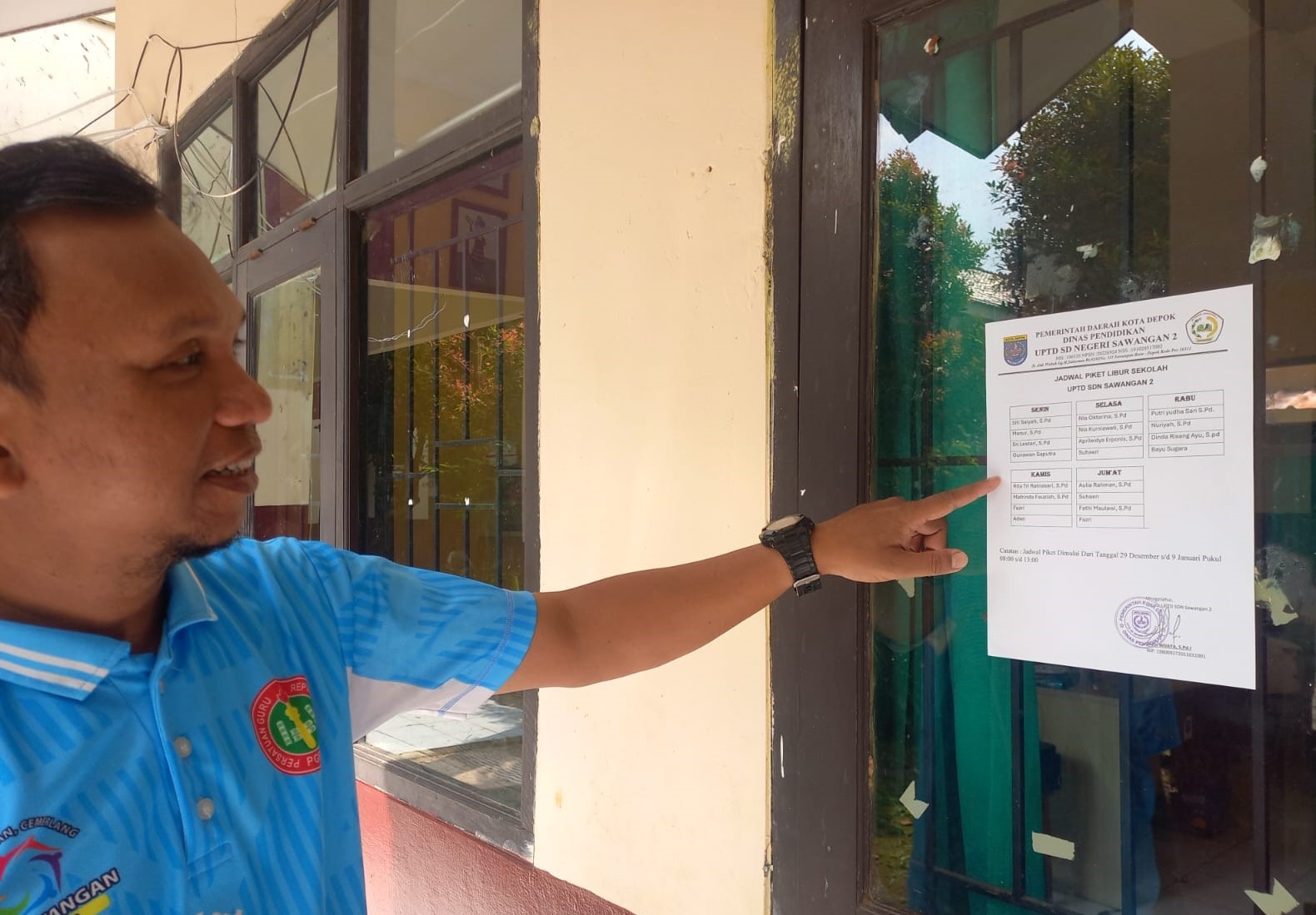 Andi menambahkan, penerapan jadwal piket tersebut merupakan tindak lanjut dari imbauan Dinas Pendidikan (Disdik) Kota Depok agar sekolah tidak dibiarkan kosong selama masa libur semester. “ Jadwal piket guru di SDN Sawangan 02 diberlakukan sejak 29 Desember 2025 hingga 9 Januari 2026,” imbuhnya.