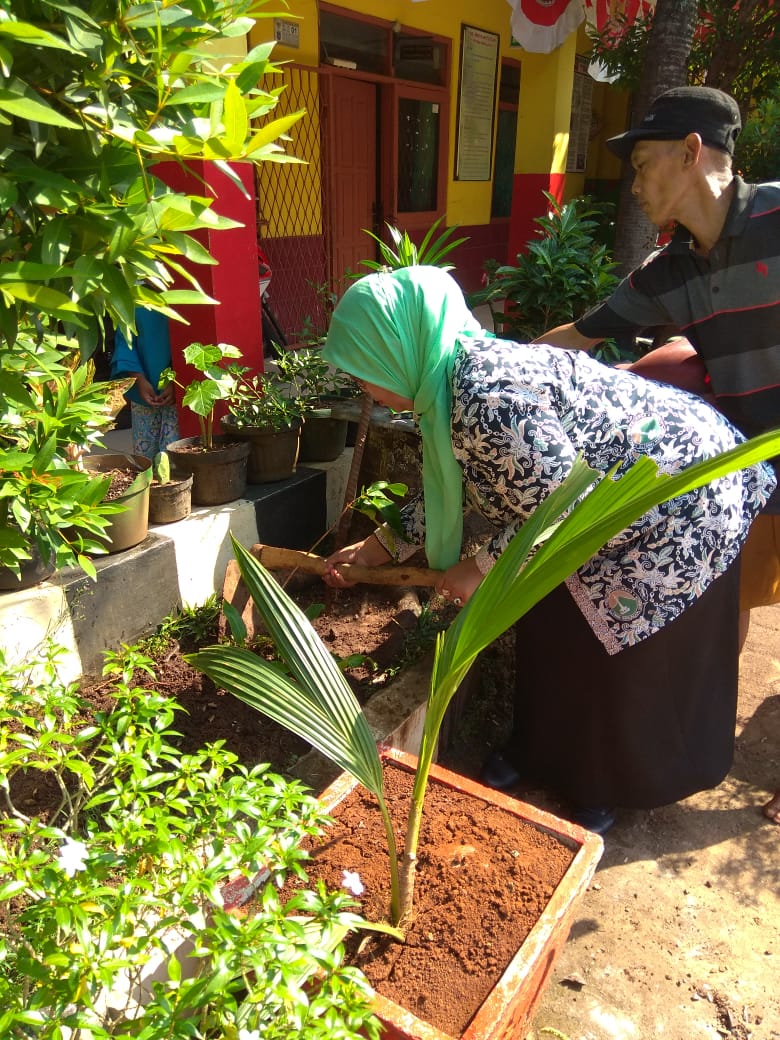 Bude juga kerap mengajak siswanya untuk gemar gemar menanam dan merawat tanamam.