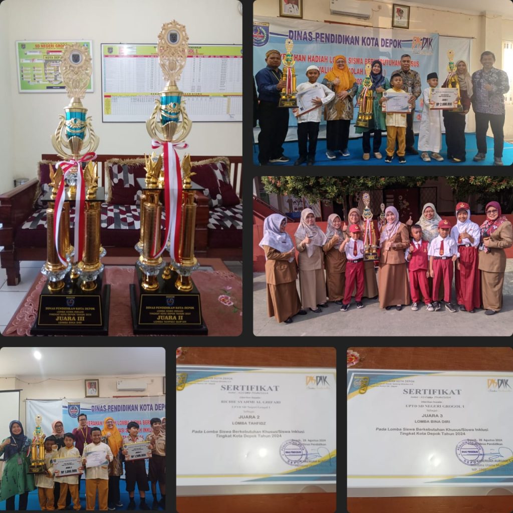Swara Pendidikan (Limo, Depok)- Anak berkebutuhan khusus (ABK), siswa SDN Grogol 1 berhasil meraih juara dalam perlombaan khusus anak inklusi tingkat SD se- Kota Depok di Sekolah Cakra Buana, Kamis (29/8/24). Juara 2 kategori Tahfidz, yaitu: Richie Syahmi Alghifari. Juara 3 kategori kelompok perlombaan Bina diri, adalah Hanan Ashad, Rully Amarulloh dan M.Sulthan.A .
